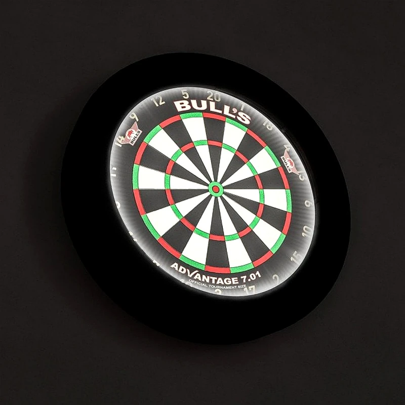 A Bull’s Lumo Lighting Surround egy innovatív megoldás, amely egyszerre biztosít tökéletes megvilágítást és hatékony falvédelmet a darts tábla körül. A 360°-os LED világítás árnyékmentes játékélményt nyújt, miközben a falat is megóvja a mellédobott nyilaktól.