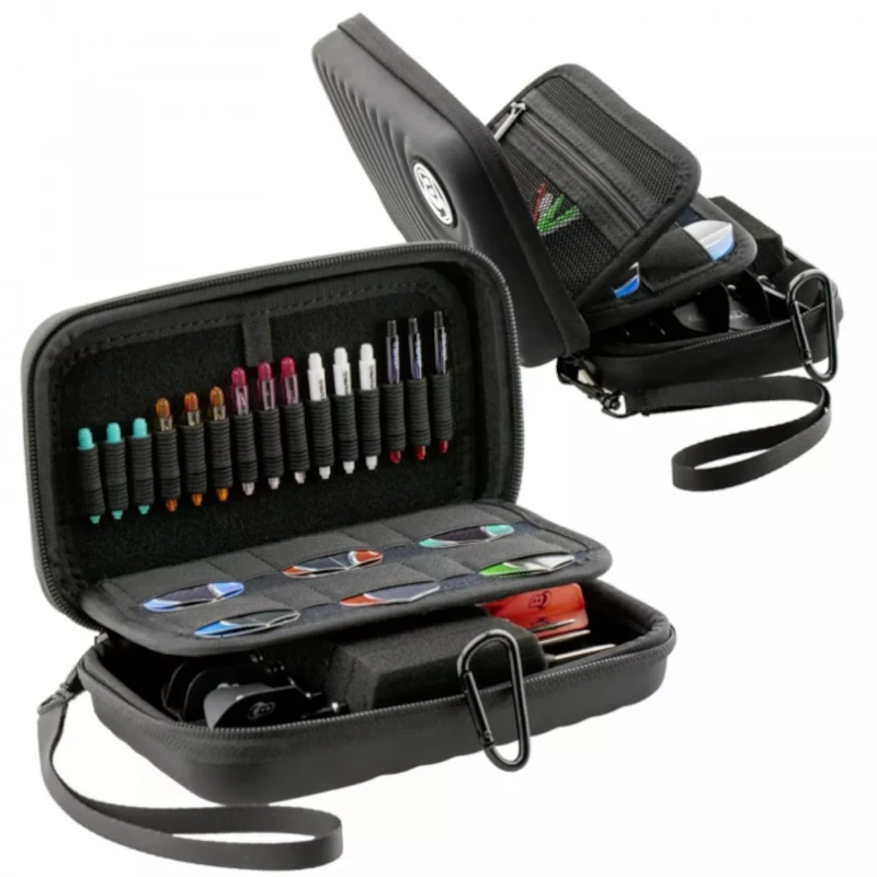 Orbis XL darts tok habtartóval, 2 komplett készlethez, extra rekeszekkel tollakhoz és szárakhoz. Praktikus és strapabíró tárolás.