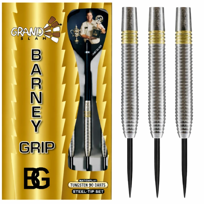 A Grandslam Barneygrip egy prémium minőségű, 90% volfrám tartalmú darts, amelyet Raymond van Barneveld (RvB), az ötszörös világbajnok nevével fémjeleztek. Kialakítása precíz és kiegyensúlyozott dobást biztosít, miközben a jellegzetes „Barneygrip” markolat kiváló tapadást és kontrollt nyújt. Ideális választás középhaladó és profi játékosok számára is, akik megbízható teljesítményre vágynak.