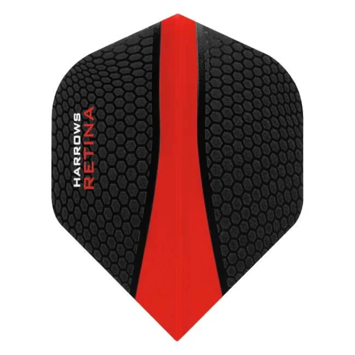 A Harrows Retina No.6 Fekete/Piros darts toll a Harrows egyik legismertebb és legnépszerűbb flight sorozatának tagja. A különleges Retina nyomtatási technológia nemcsak látványos megjelenést biztosít, hanem növeli a toll tartósságát és repülési stabilitását is.