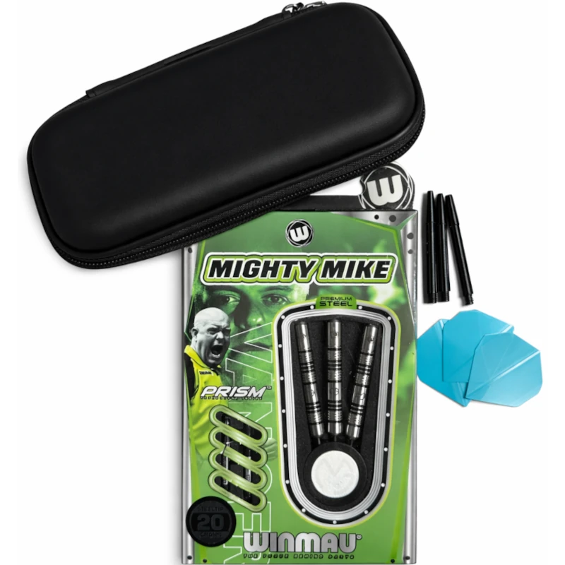 Winmau Mighty Mike INOX 20g Darts Szett Tokkal + Extra Szár és Toll